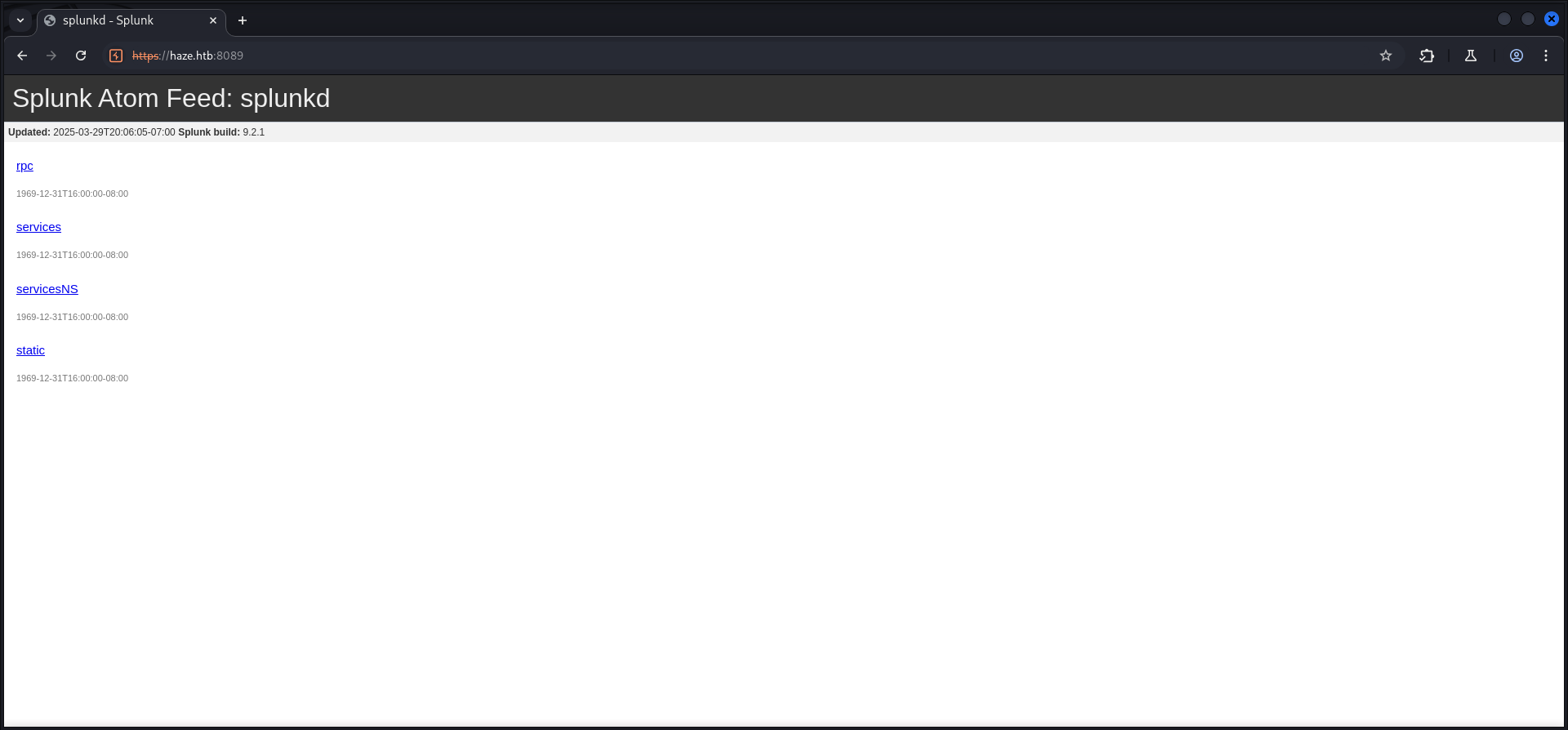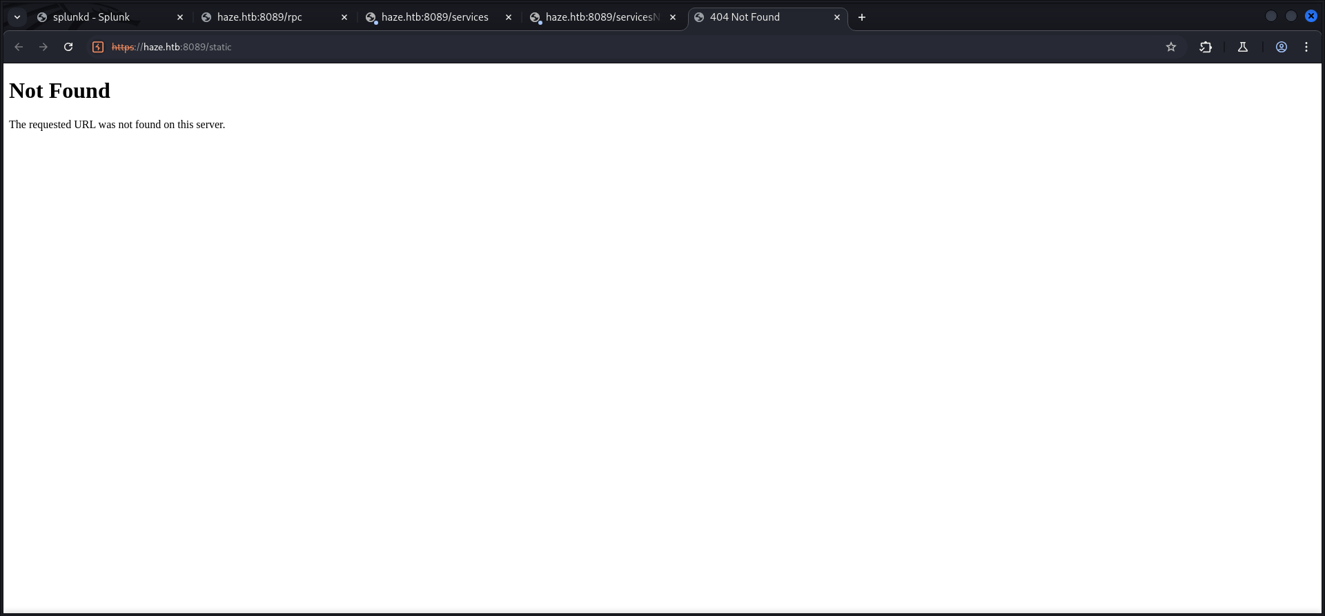 The port scan using Nmap revealed that we had to deal with a nearly normal Domain Controller. However we found also port 8089/TCP running on the machine using the options -Pn -p- in later scans.