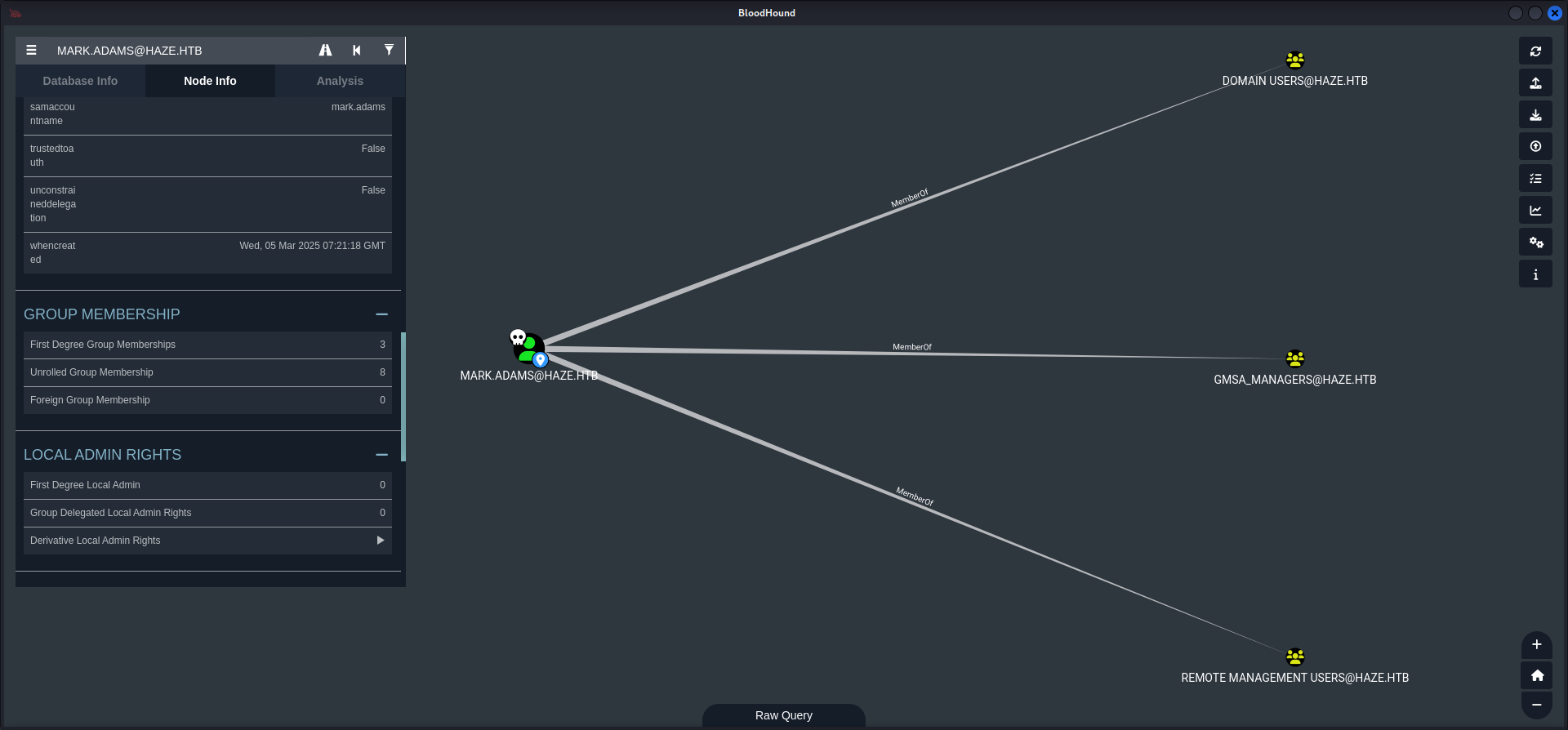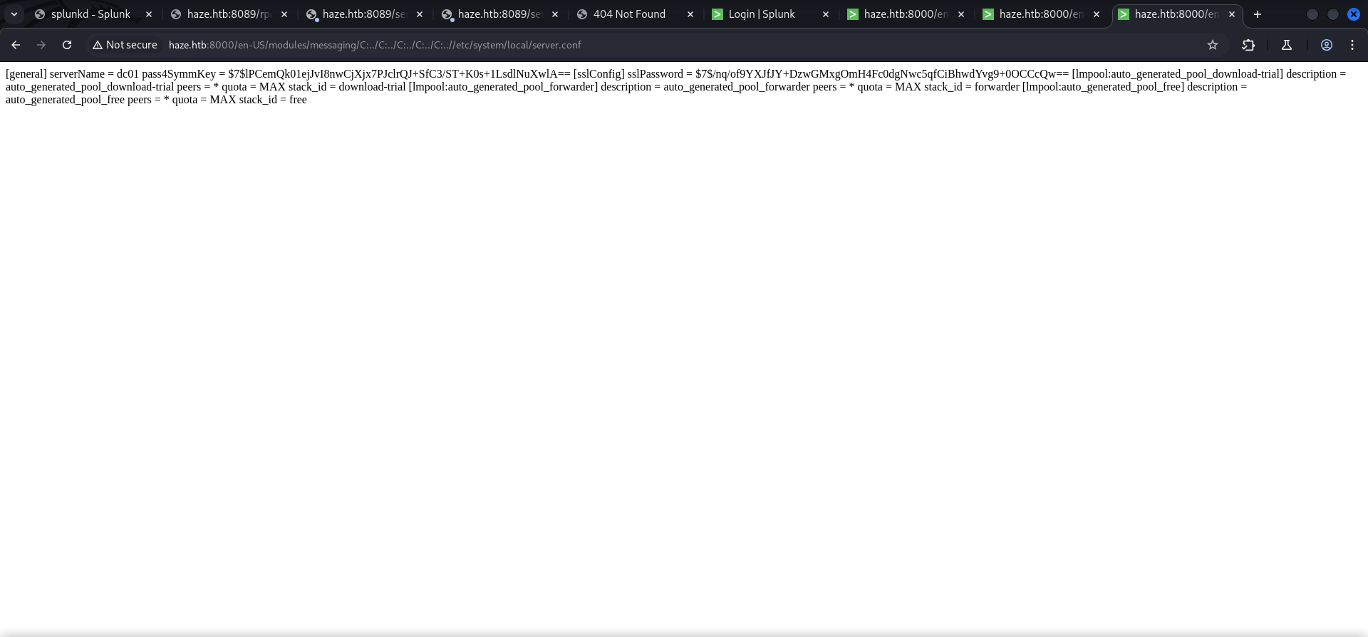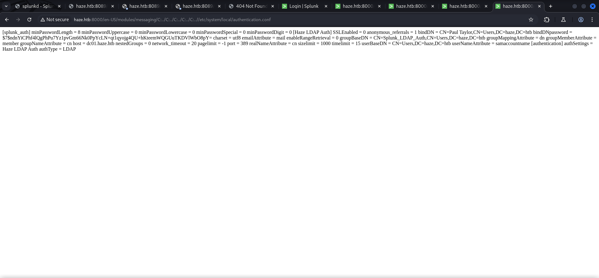 HAZE\Splunk_Admins Group S-1-5-21-323145914-28650650-2368316563-1108 Mandatory group, Enabled by default, Enabled group
