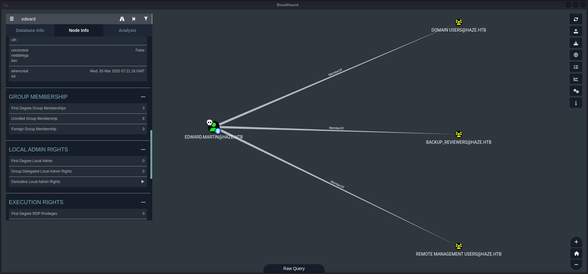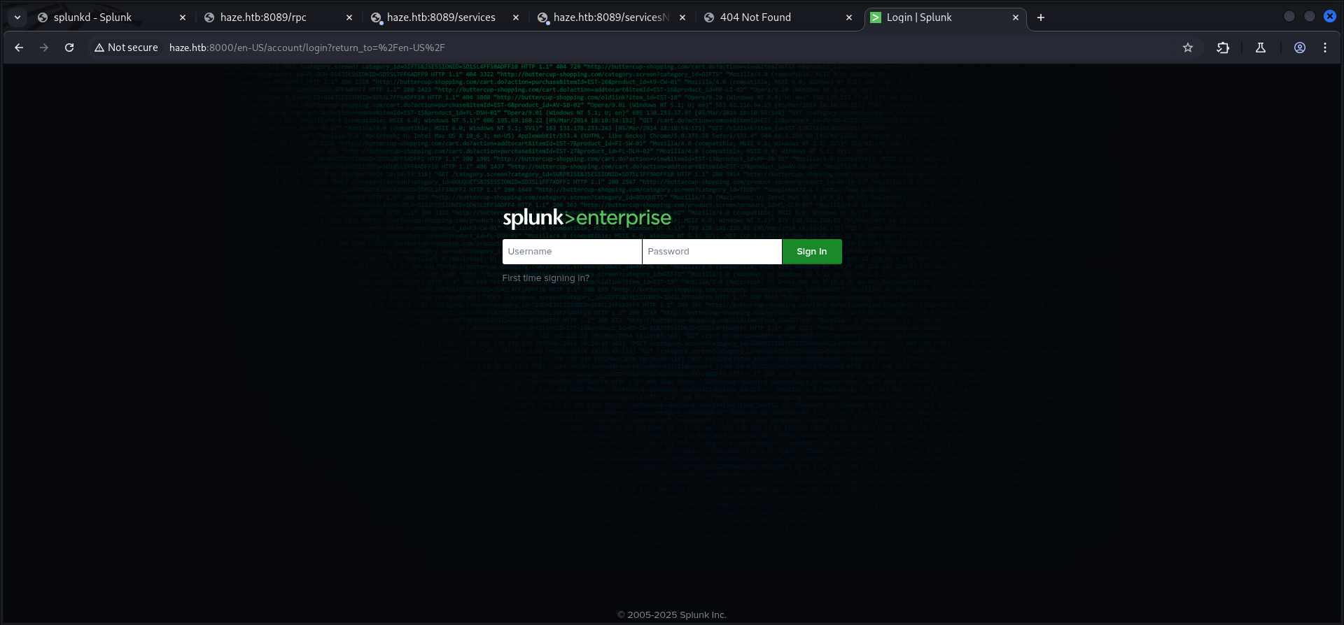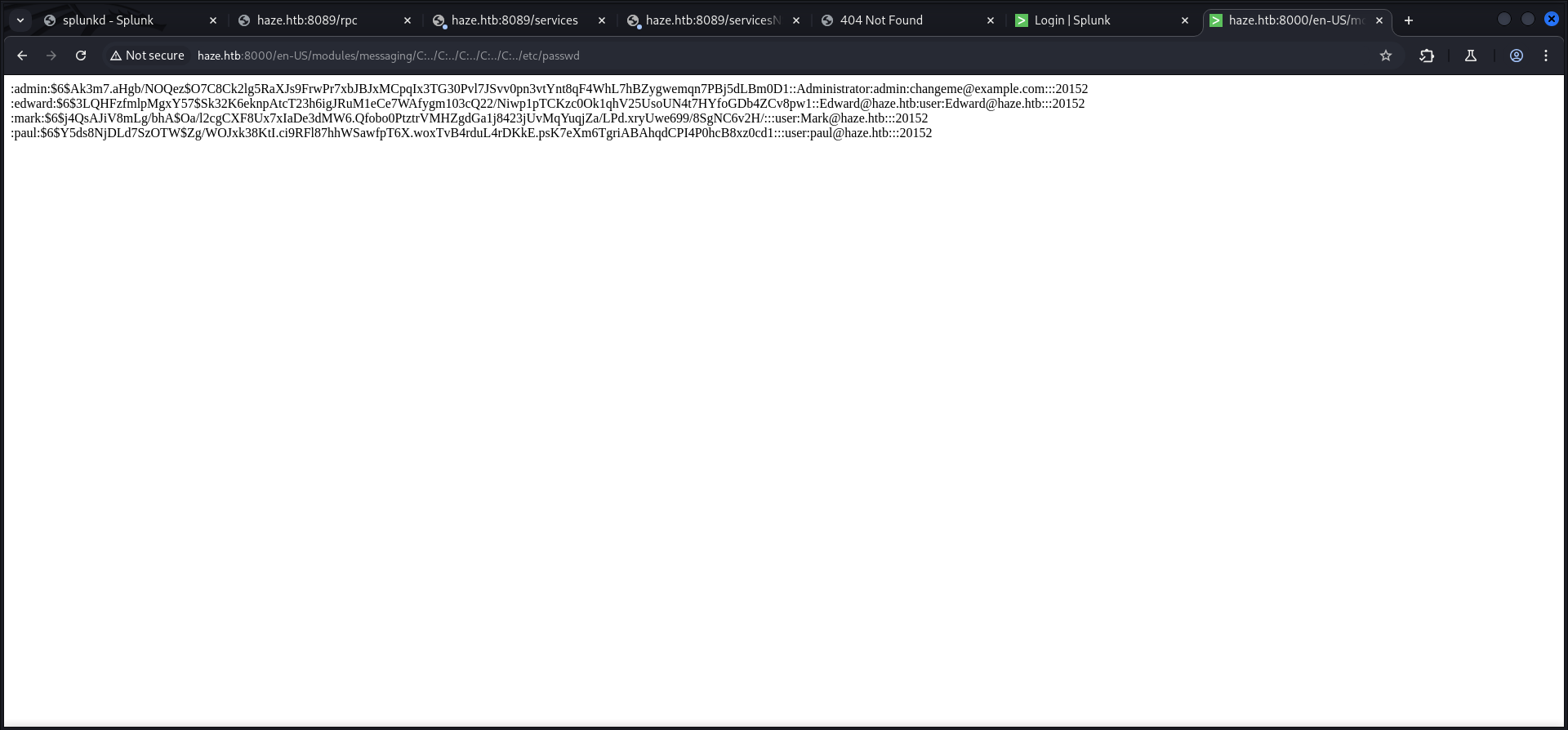 HAZE\Splunk_Admins Group S-1-5-21-323145914-28650650-2368316563-1108 Mandatory group, Enabled by default, Enabled group