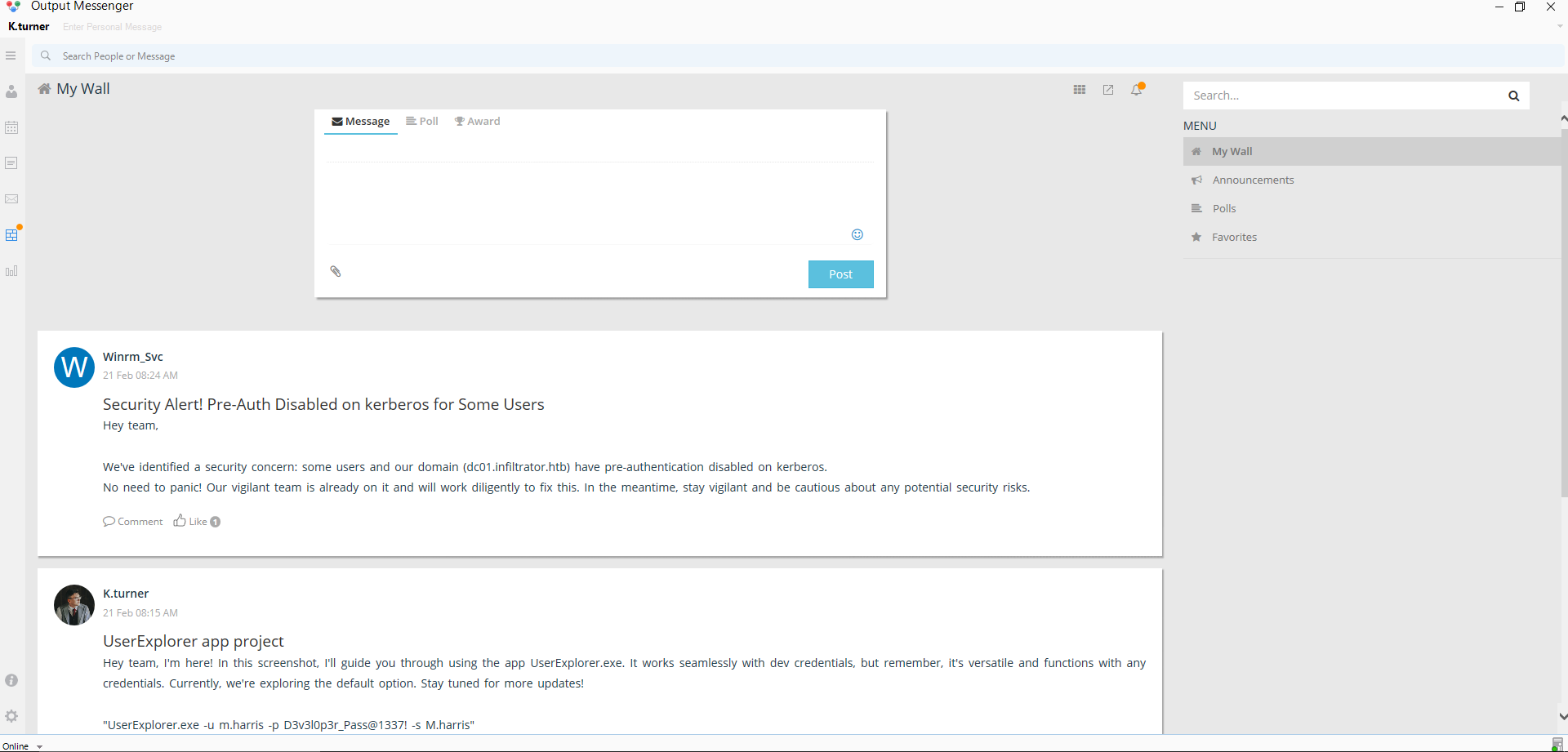 - Valid credentials grant PowerShell remoting (Evil-WinRM)