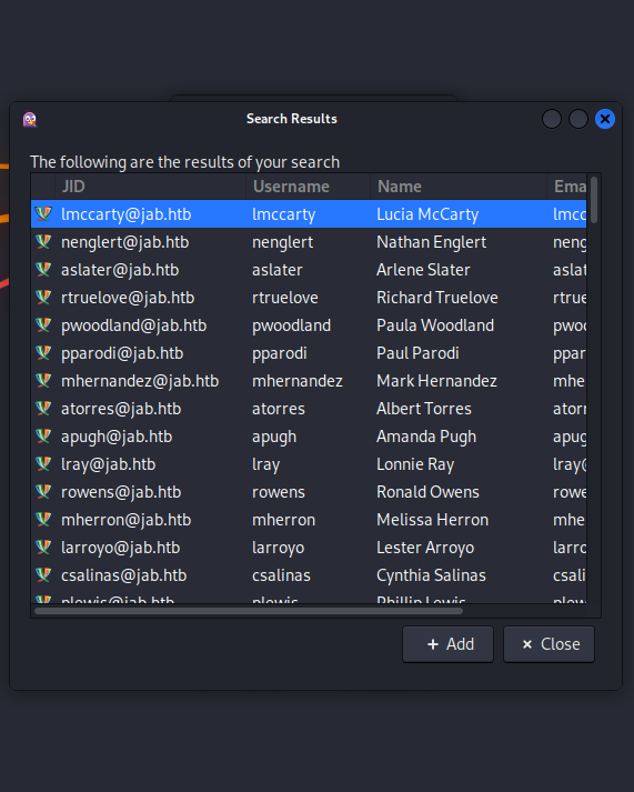 | 3269/tcp | ssl/ldap | Microsoft Windows Active Directory LDAP (Domain: jab.htb0., Site: Default-First-Site-Name) |