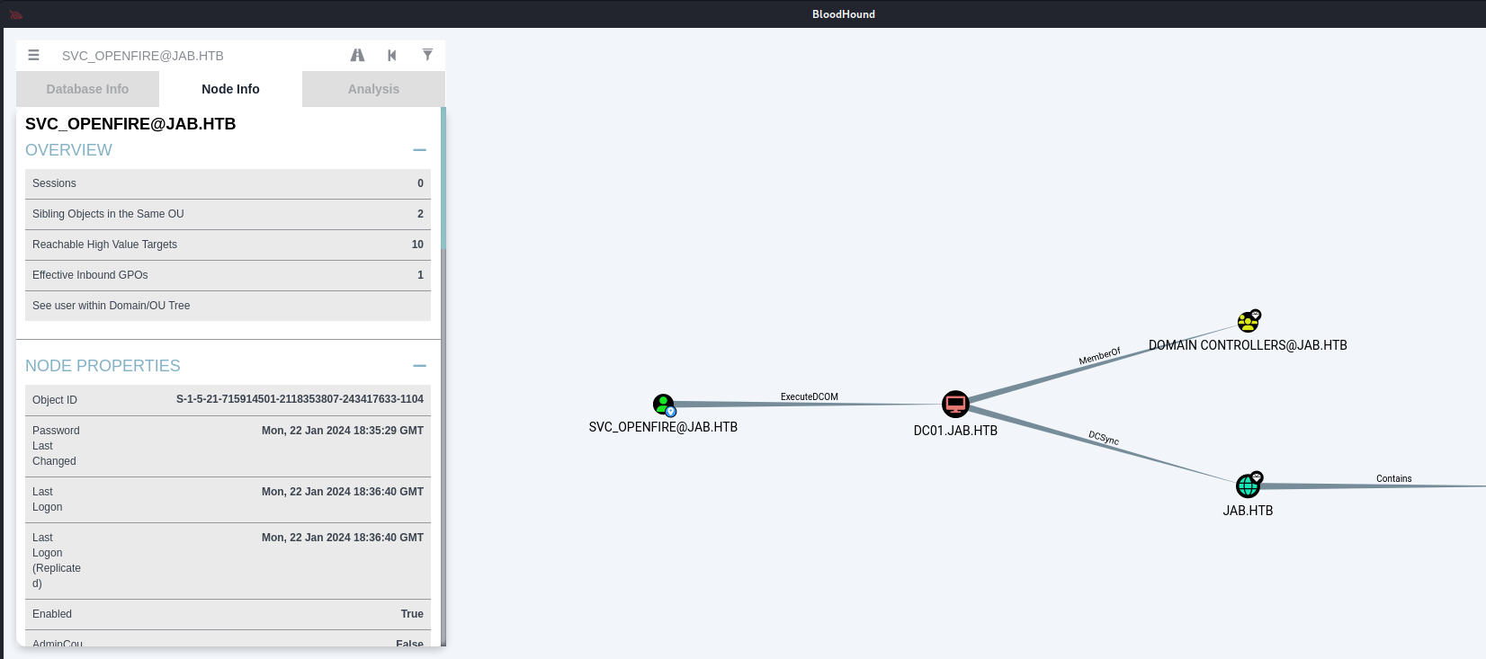 | 389/tcp | ldap | Microsoft Windows Active Directory LDAP (Domain: jab.htb0., Site: Default-First-Site-Name) |